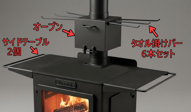 オーブンとタオル掛けバーは、現在お使いの煙突に組込む事も可能です。※煙突によって取付不可の場合もございます。